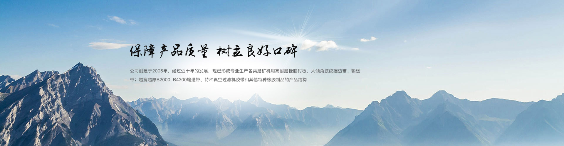公司創(chuàng)建于2005年,經(jīng)過(guò)近十年的發(fā)展,現(xiàn)已形成專(zhuān)業(yè)生產(chǎn)各類(lèi)磨礦機(jī)用高耐磨橡膠襯板,大傾角波紋擋邊帶、輸送帶、鋼絲繩輸送帶;超寬超厚B2000-B4300輸送帶、特種真空過(guò)濾機(jī)膠帶和其他特種橡膠制品的產(chǎn)品結(jié)構(gòu)。